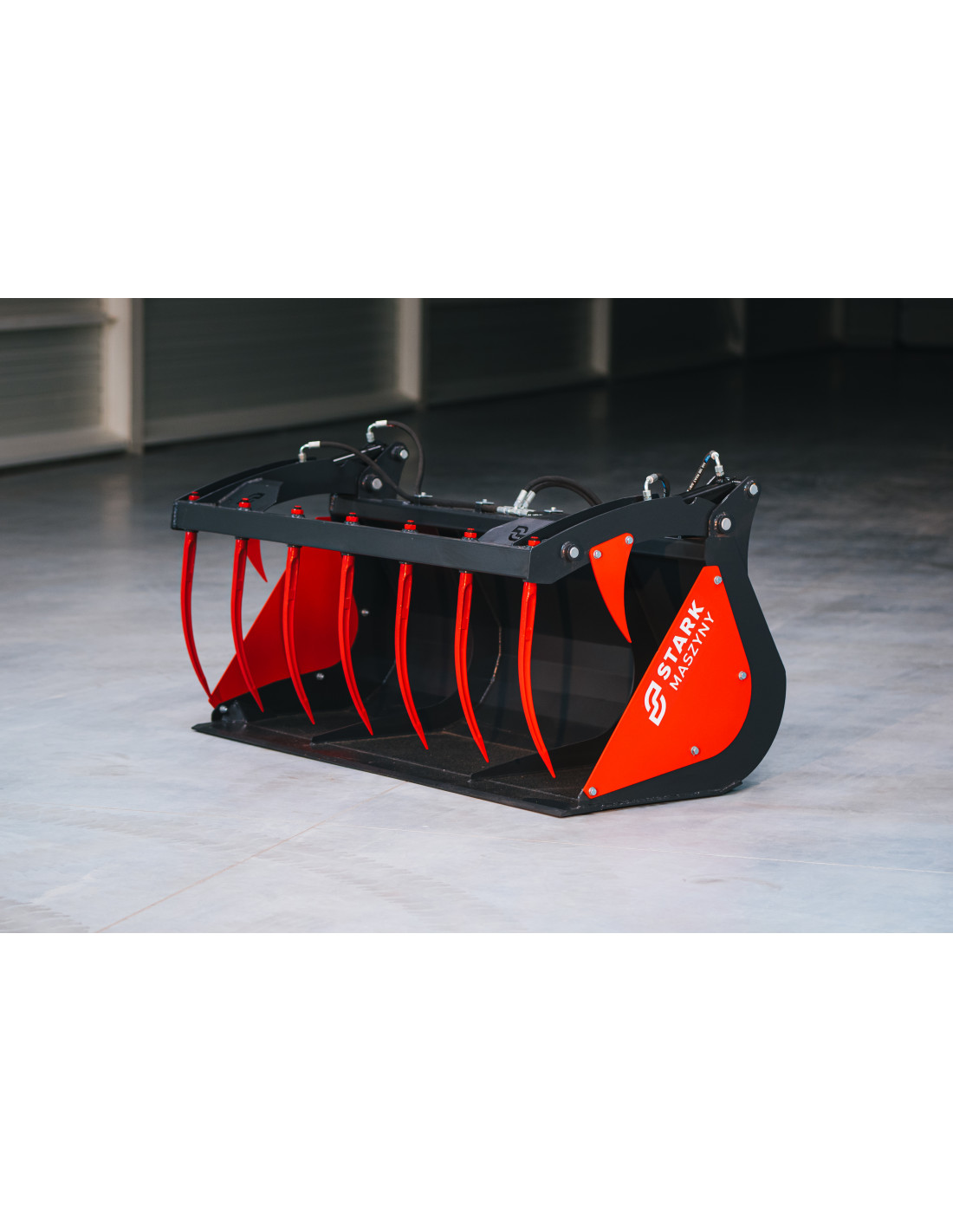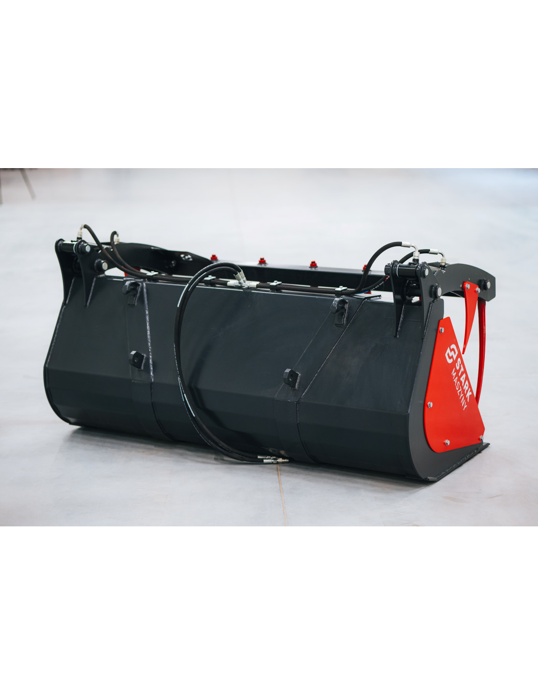 Die geschraubten Zinken (680 mm, M22 x 1,5 mit Konus K001) sowie die verstärkte Rückwand an den Aufnahmepunkten bieten maximale Stabilität bei schwerem Materialtransport. Dank der zwei Hydraulikzylinder wird eine kraftvolle Greifbewegung ermöglicht, die den Transport und das Umschlagen von Materialien sicher und effizient gestaltet.