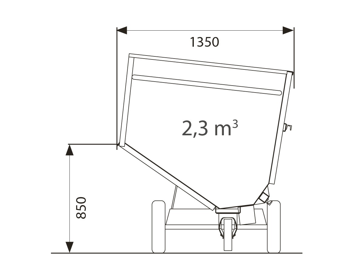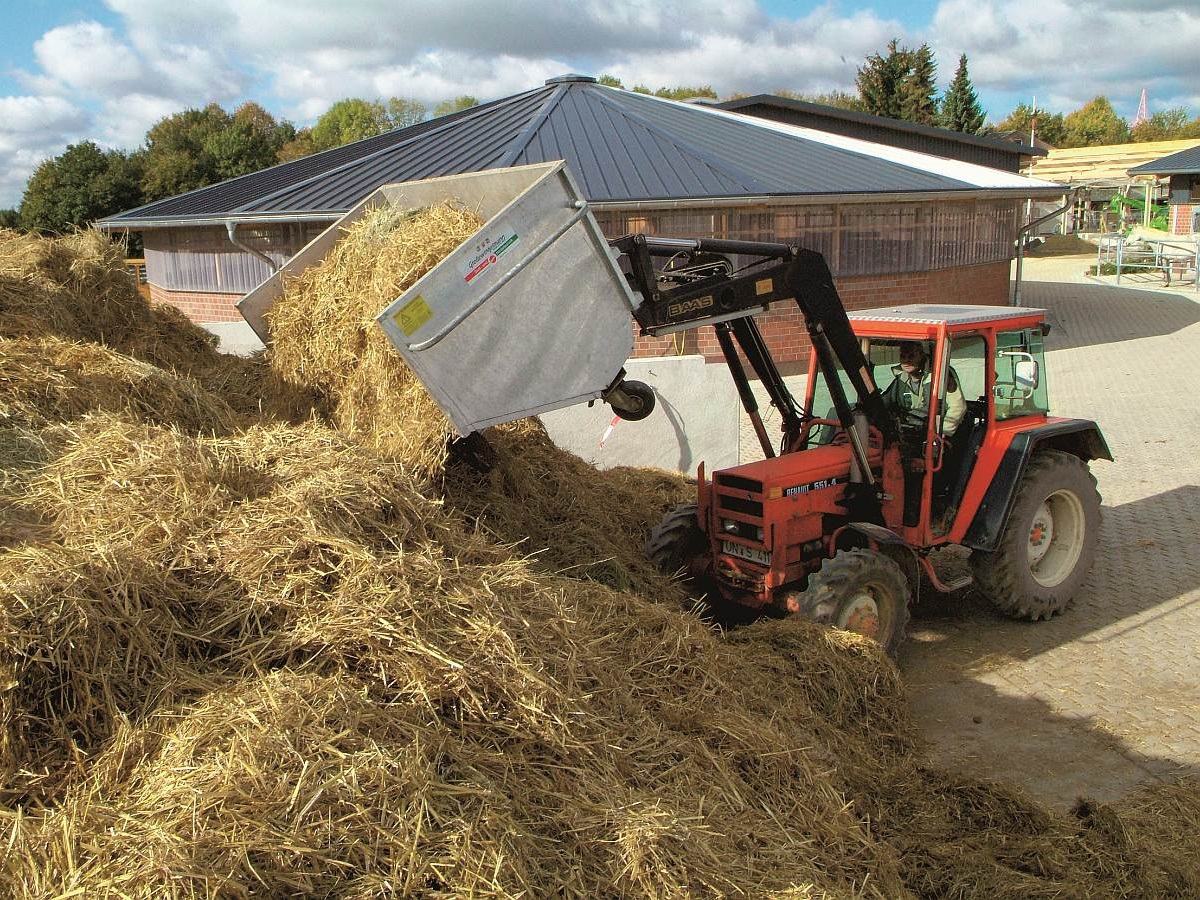 Mit einem Fassungsvermögen von ca. 2,3 m³ und einer Tragkraft von bis zu 1100 kg lassen sich Futter, Mist, Einstreu oder andere Materialien mühelos bewegen. Die stabile Konstruktion sowie die hochwertige Verarbeitung sorgen dafür, dass der Großraumkuli auch bei täglicher Nutzung zuverlässig im Einsatz bleibt.