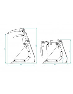 mit EURO- Aufnahme , Blechstärke 4 - 10mm Stahl S355 , 2 Hydraulikzylinder , geschweißte Zähne am Obergreifer , verstärkte Rückwand an den Aufnahmepunkten , Schleifkufen am Schaufelboden , Seitenwände herausnehmbar , Hardoxschürfleiste HB 500 12x110mm , pulverbeschichtet