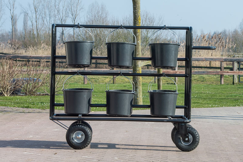 Mit dem Eimer-Futterwagen gelingt eine schnelle, stressfreie und gut organisierte Fütterung, ideal für Ställe mit mehreren Pferden und individuellen Futterplänen.