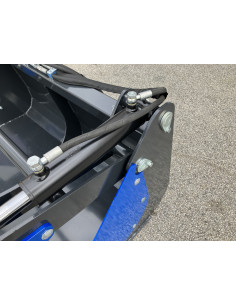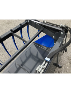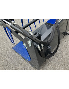 Die geschraubten Zinken (680 mm, M22 x 1,5 mit Konus K001) sowie die verstärkte Rückwand an den Aufnahmepunkten bieten maximale Stabilität bei schwerem Materialtransport. Dank der zwei Hydraulikzylinder wird eine kraftvolle Greifbewegung ermöglicht, die den Transport und das Umschlagen von Materialien sicher und effizient gestaltet.