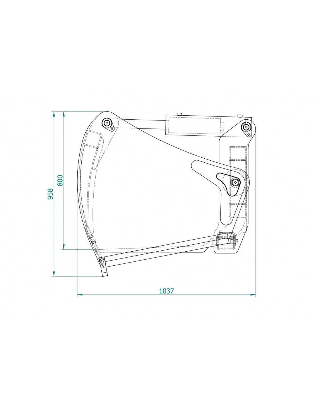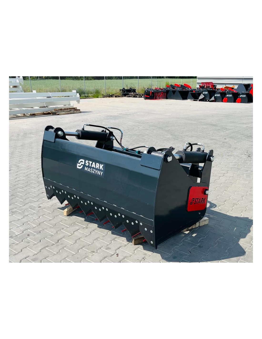 Die Zinkenanordnung umfasst 8 untere Zinken und 2 zusätzliche, die für maximale Stabilität und gleichmäßiges Schneiden sorgen. Der Obergreifer hat eine Öffnungsweite von ca. 830 mm und ist mit geschraubten Messersektionen ausgestattet, die eine einfache Wartung und Austauschbarkeit ermöglichen. Zusätzlich sorgt die verstärkte Rückwand an den Aufnahmepunkten für noch mehr Stabilität.