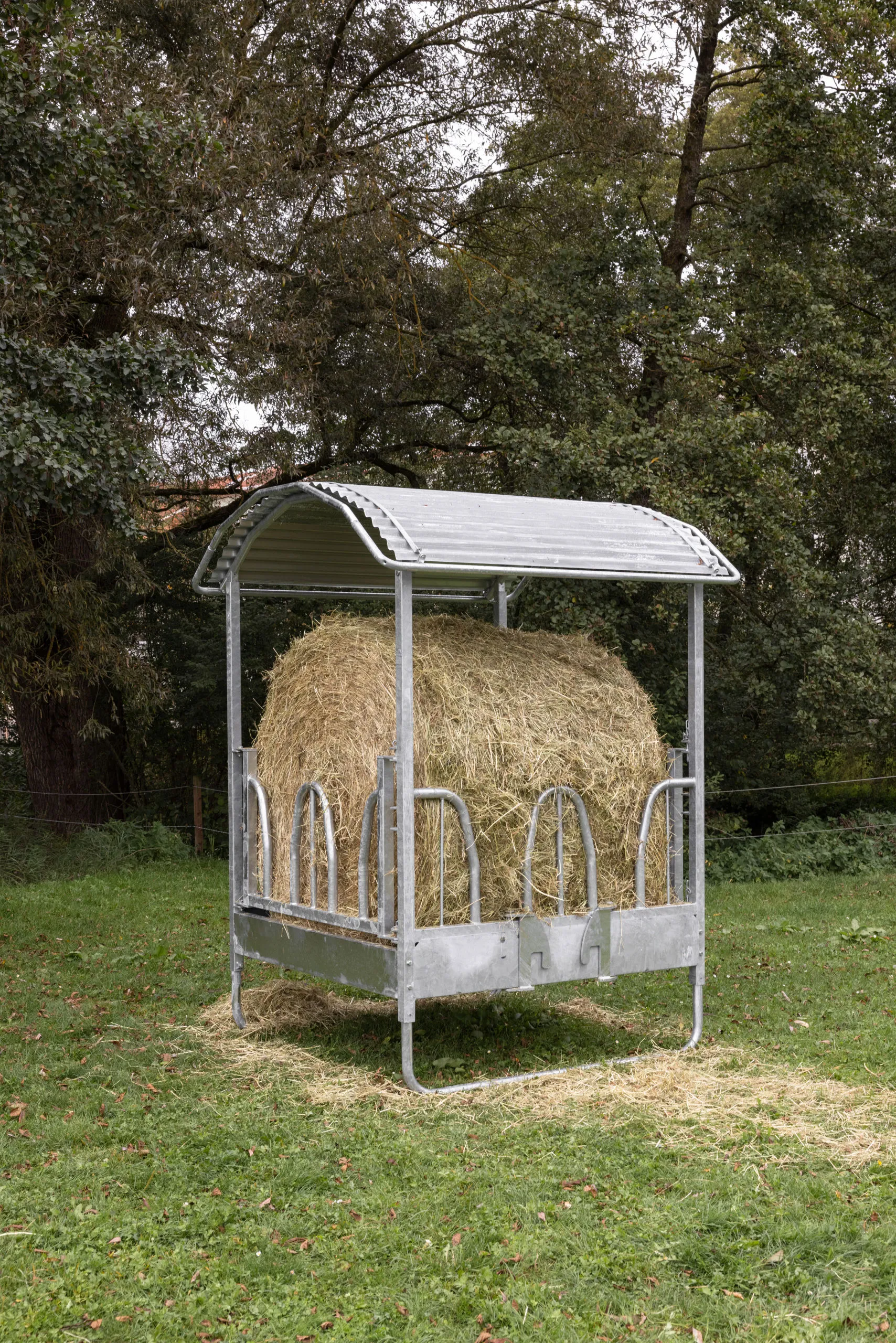 Gefertigt aus feuerverzinktem Metall, ist die Viereckraufe: